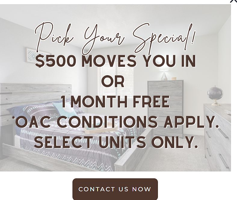 - Special offer! Price Drop Special on all 1-bedroom units $1146-$1210-oac.