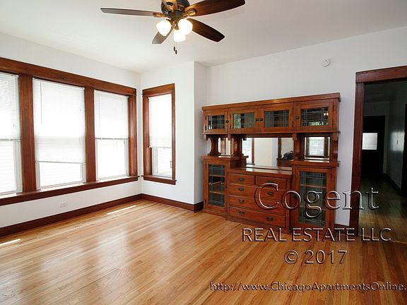 Call Michael at 773 627 6646 with questions or to schedule a showing; I dont have text. Ready July 1st. Old Irving gem, duplex down with 2 full baths. This unit is in a 2 flat and actually feels more like a Single Family home than apartment; total square feet is estimated at 1,900. Parking is included, one garage space and tandem outdoor space. NO pets; sorry! 7 plus total rooms including 3 bedrooms, eat in kitchen with separate dining room. Air conditioning with Gas Forced heat (HVAC). Kitchen: (eat in) has gas stove, microwave, refrigerator & dishwasher. Bedrooms: Bedroom 1: Size 14 x 9 - 1st floor Bedroom 2: Size 13 x 9 - 1st floor Bedroom 3: Size 10 x 9 lower level. Baths: Main level tub. Basement level stand up shower. Utilities: you pay for Gas and Electric. Laundry: in building, right outside your unit, ie you dont have to go outside. Transportation: Irving Park Blue Line (.3 mile), Irving Park Metra (.3 mile) to Olgilvie & Harvard/McHenry, CTA Buses #78 Montrose, #80 Irving Park, & #53 Pulaski. Groceries: Tonys 4137 N. Elston. This place is amazing. Bars: Paddy Macs, Independence Tap, The Cabin, Black Tooth, Unforgettable Lounge, Old Irving Brewery. Restaurants: Bread & Wine, Alps, Leonas, Chicken Works, Zebda, Aye Aye Picante, Rubys, Smoque, Tassilli, McNamaras, Sabitinos, Smoque, Shokran, Cafe Mirabella. Cider House: The first cider house in IL will be opening in 5 months, called Eris, about half mile away at 4200 W. Irving. Area Amenities: Independence Park. Apply: $50 Credit/background check, $850 Total move in fee (No security deposit). You can apply online at www.ChicagoApartmentsOnline.net: please include photo and 1 months pay info. Cogent Real Estate, LLC An IL Licensed Broker: Equal Housing Opportunity. Thank you!! Old Irving Park, adjacent to Irving Park, Mayfair, Independence Park, Albany Park.