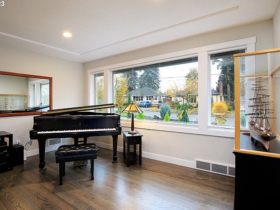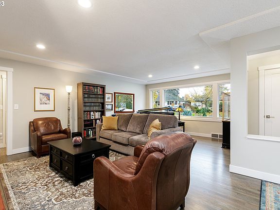 LOTS OF CHARACTER in this beautifully and meticulously remodeled Mid-century! Attention was given to every detail with the mission to retain the charm of the era. The spacious light filled living & dining areas with period gas fireplace, tray ceilings, and refinished original oak hardwood floors welcome you as you step through the front door into the entry. The lovely kitchen boasts custom cabinets, quartz counters, hardwood floors, & stainless appliances. The main floor hallway finished in Venetian plaster leads to 3 bedrooms and a full bath to complete the main level. The lower level provides a family room with 2nd gas fireplace, 4th bedroom, office, laundry & full bath. Updates include a new furnace and water heater, electrical panel, roof, siding, & windows. Also recently installed was A/C, gas to both fireplaces, a fenced back yard, a detached 12x11 structure (currently used as woodworking shop), and a covered patio--providing comfort rain or shine. This one is absolutely immaculate, with attention to every detail evident both inside and out! [Home Energy Score = 5. HES Report at https://rpt.greenbuildingregistry.com/hes/OR10187792]