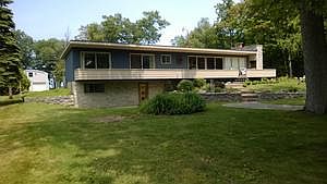 Slavin Point is where this home is located with a sandy beach easement just steps away. Home is on the lakeside of M-25. Large windows and doorwalls throughout with a balcony that runs the length of the house. There is an attached garage set up as a recreation room with a full kitchen and full bath. The additional 2.5 car garage has a large work area and plenty of room for your boat and car. There is a full walk-out basement with a 3rd bedroom, half bath and family room. Updated well. Home is in spotlessly clean.