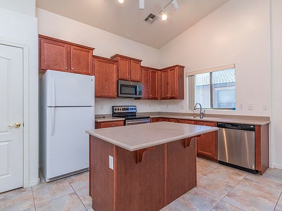Move-in ready 3 beds plus bonus room, 2 baths home in a spacious 1,973 sq ft great room floor plan! Tall, vaulted ceilings, tile flooring and neutral paint throughout with tons of natural light. The eat-in kitchen features 36'' staggered maple cabinetry, Corian countertops, stainless appliances including an electric range/oven, pantry, and cozy dining area. Extra bonus room off the great room complete with ceiling fans and sliding door access to the backyard. Master retreat includes access to the bonus room area and an attached bath with dual sink vanity, tub/shower combo and walk-in closet with shelving. Backyard has a covered pavered patio great for outdoor dining, low maintenance landscaping and storage shed. Other features: 2 car garage, tinted windows, no carpet, ceiling fans in all bedrooms, new water heater & water softener, leased solar panels providing tremendous utility savings and SO much more! See today!