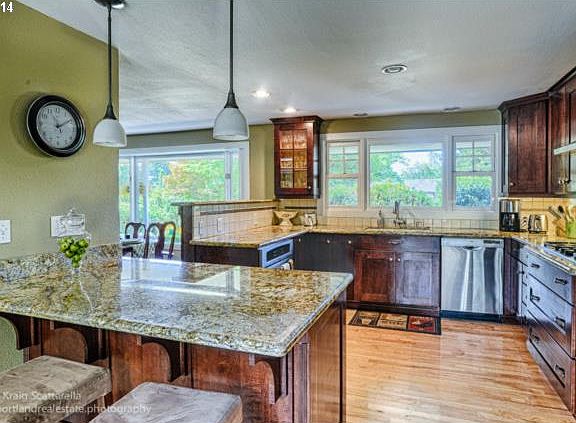 Lovely traditional home in Smoke Rise on a cul-de-sac with a remodeled gourmet kitchen and family room with all the bells and whistles. New hall bath. Just blocks to Bridlemile Elem., Hamilton Park, shops, bus line, and Downtown Portland. Fruit trees. Large .4 acre lot.