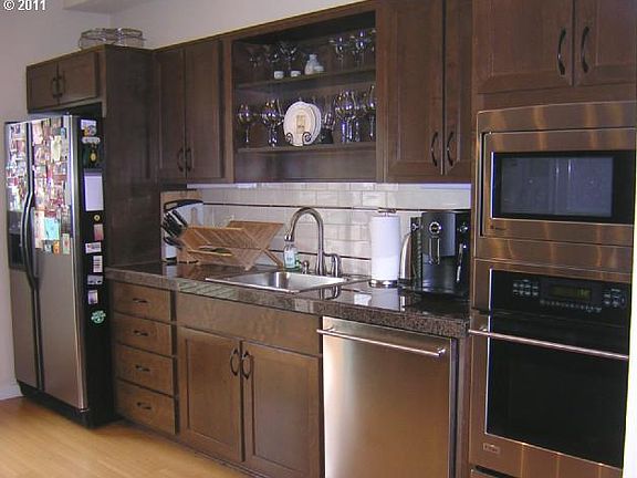 Classic end unit townhouse in the Historic Corbett neighborhood. Great room floor plan with bay window & bamboo floors. Kitchen features stone counters, stainless Energy Star appliances & lots of cabinets. Relax on the deck and view the soothing landscaped common area w/waterfall. Step out your door & be downtown in minutes. Close to OHSU, shopping, waterfront & bus lines.