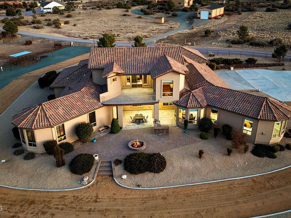 Luxury living with world-class equestrian facilities. Fully remodeled &privately gated, it offers breathtaking views of Mingus & Granite Mountains. Set on 3.69 fully fenced acres, w/ Approx 5,000 sq.ft main living. featuring 5 beds, 5 ¾ baths, soaring ceilings, plank tile flooring, custom cabinetry, 234-bottle wine wall, built-in bar, & RV garage. Primary suite is a retreat w/ fully updated bath. Addl- 4 ¾ are all fully remodeled Outdoor amenities include a pro-level roping arena, 3,200 sq. ft. barn with a mare motel, five 16x16 stalls, large tack room w/ a hidden 10' door, & three RV hookups w/ water, electricity & horse stalls. Arena features roping boxes, chute, sand-packed surface, cattle area w/ sorting gates & feeding stations. Rare luxury ranch in a prime Arizona setting