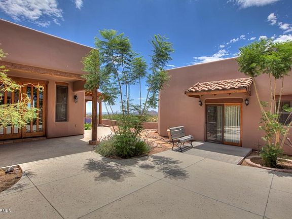 Views! First time on the market, custom home sits high on the hill and has 360 degree Views! From every window, every patio - come see as far as ones eye can see - even city lights! Home features 3 separate buildings - main home 2250 sq ft, living room, flex/dining room, kitchen, 2 bedroom + bonus room, 2 bath & laundry room. 600 sq ft Casita/Art Studio features open divided 2 rooms & bath then detached oversized 3 car garage/workshop with additional garage door to the backyard. All structures have privacy & windows to take advantage of the views from every angle!! Patios, Front Courtyard, Tile floors, new carpet, fresh new interior paint, sunscreens, 3 zoned HVAC + 2 Master Cool units, masonry fireplace + so much more - one can even practice their putting on the putting green!