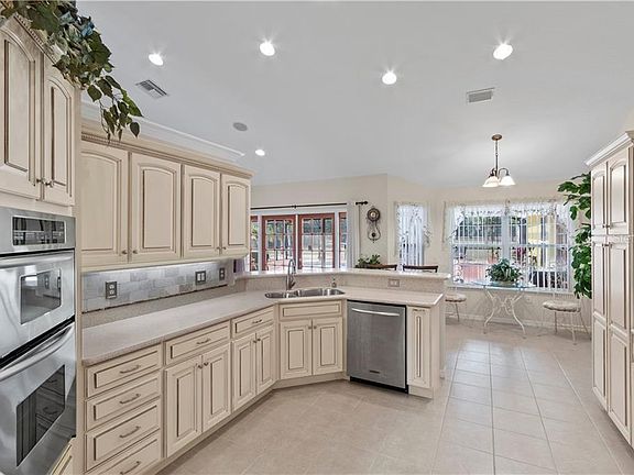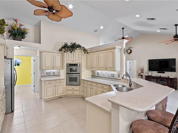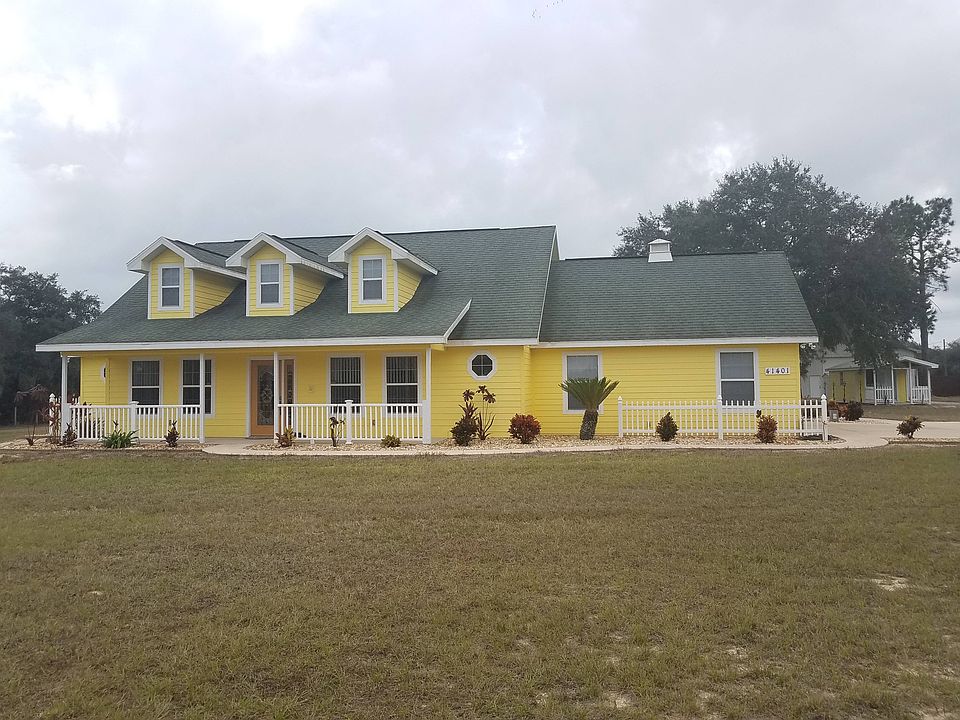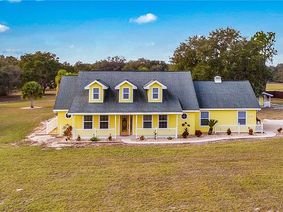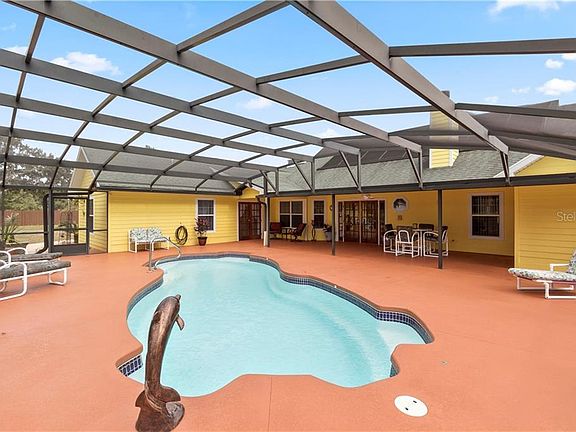 Beautiful 3-bedroom/3-bath country home situated on 7.5 acres with a heated pool. This home sits back from the road with a private gated entrance, perimeter fencing and beautiful curb appeal. Inside the home, you'll find gorgeous living spaces including a private den with cherry floors, and a large living room with cathedral ceilings, recessed lighting and granite fireplace. The gourmet kitchen features custom cabinetry with crown molding and undercabinet lighting, Corian-like countertops with beautiful marble backsplash, stainless steel appliances including a double oven and ceramic cooktop. The master suite has tray ceilings and private pool access and offers an en suite master bath with dual vanities, a jetted garden tub and walk-in shower. Two spacious bedrooms are on the opposite side of the home, and one has an en suite bath featuring rainfall shower heads and pool access. Step out onto the screened lanai and splash into the solar heated pool with plenty of room to entertain on the spacious deck. The property features a 3,200 sq. ft. outbuilding/garage with a bathroom and car lift, perfect for RV storage and more! There is also a charming garden shed for the nature lover, or it could be perfect for a craft room or playhouse. The possibilities are endless with this beautiful property!