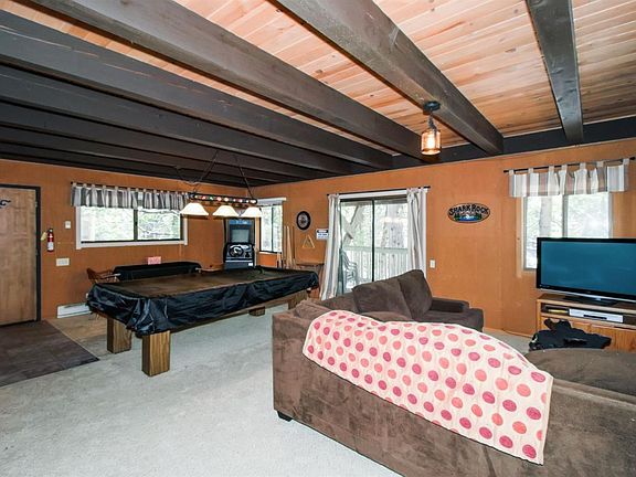 Great Value cabin located in peaceful Musick Meadows not far from the Shops and Restaurants in Shaver Lake. Perfect for large family and friends. Locally known as the 'Shark Rock' cabin! Spacious Bedrooms, Kitchen, Living room on the upper levels and bonus game room on the lower level. Propane wall furnace, Pellet stove and a fireplace keep this cabin warm and cozy. Washer and Dryer included plus some furniture to be negotiated. Priced to sell.. bring the whole familyand take a look.
