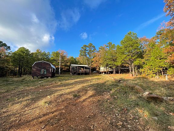 Come away to the mountains where you will find serenity at the Bear and MooseTracks Lodge. These two cabins are located on Flat Top Mountain in the Kiamichi Wilderness that has approximately 10,000 acres of land around Big Mountain. The wilderness offers tranquil creeks, mountain terrain, tall trees, and beautiful scenery, with plenty of wildlife. Enjoy hiking, fishing, and just getting out and enjoying nature! The Kiamichi has yearly dues of $200 and also $35 yearly for the on site volunteer fire department and helicopter pads. This 5 acre property has two cabins on it. The larger cabin is 575 sq/ft with a bedroom, loft, Kitchen, bathroom, laundry, and living room. The front porch is screened in and there is a covered area off the back. The smaller cabin is 240 sq/ft with an open kitchen living area, a bathroom, and closet. This cabin also has a covered deck out front. Both of the cabins have electricity, water, heat, air and a septic system. A 12x20 shed is also in place for storing your recreational vehicle that also has electric and its own breaker box. This place is ready for all of your future memories! Call Dawn to set up your personalized tour today.