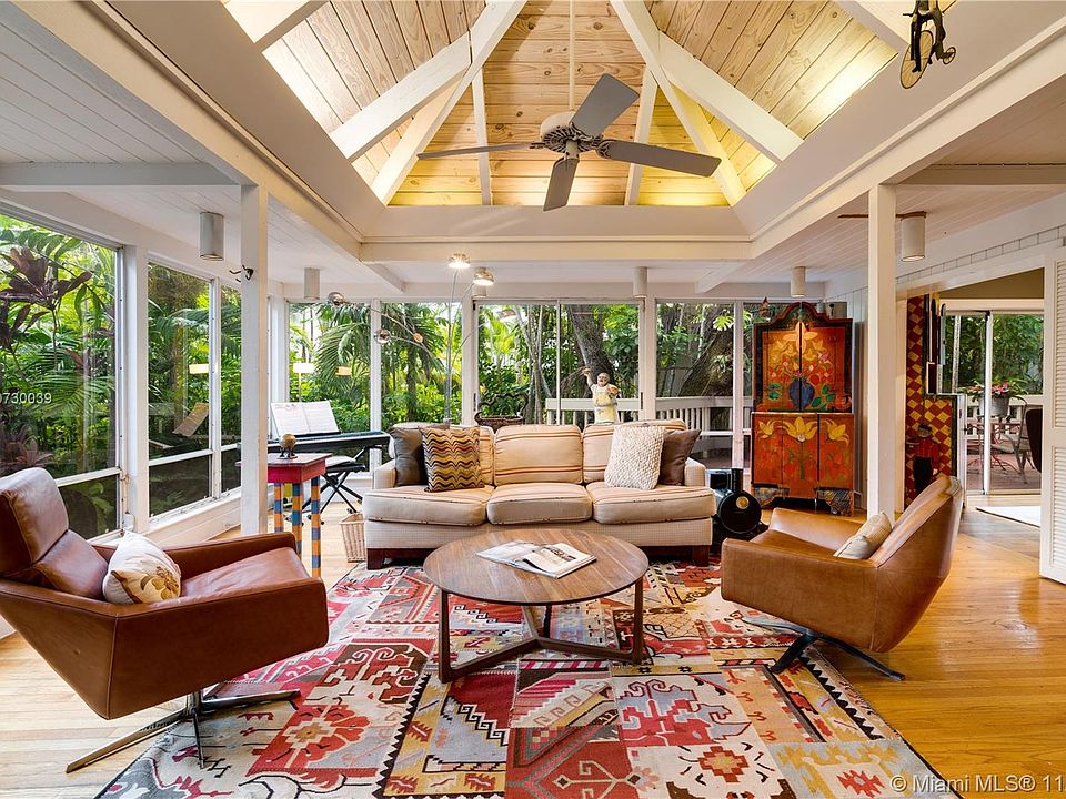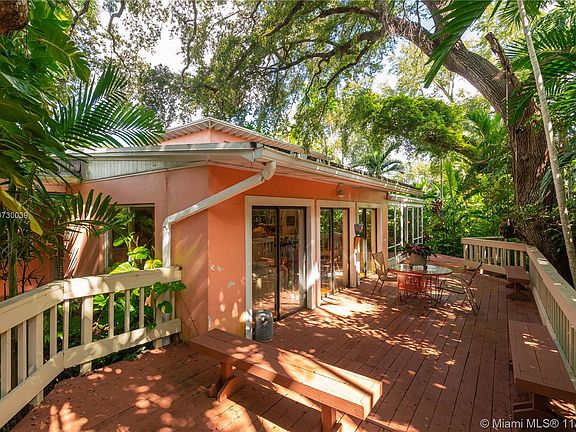 The lure of fabled Coconut Grove is evident in this charming 4 bedroom fixer upper. Replete with wood floors and exposed beam ceilings, this Grove bungalow is lushly landscaped with an enormous wrap around deck that enhances the experience of the tropics. A picturesque family room, surrounded by glass, allows in streaming light with scenic views from every angle. The second-floor master suite provides optimum privacy. Cozy built-ins, throughout the house, add a warm and inviting touch. The house sits at a high South Grove elevation. A Very Special Home.