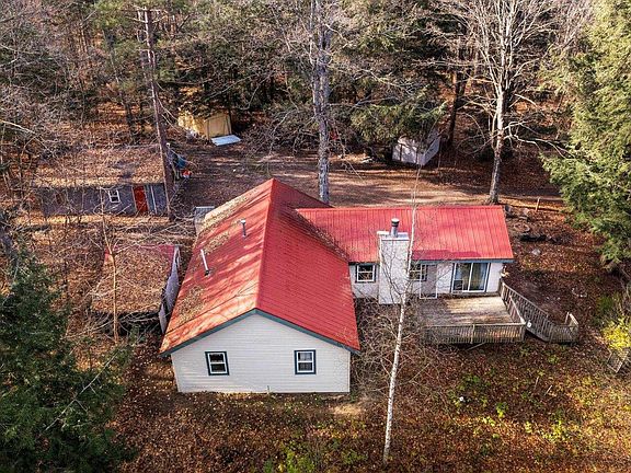 Single-family homestead with short-term rental potential for snow and hunting seasons. 60 Acres of hardwoods, rolling countryside, open fields, and established trails adjacent to Lakes of the North. This three bedroom home features wood burning fireplace, pellet stove, open kitchen and dining area, deck, 2 car garage, sheds, hunting prop, and plenty of space for toys.