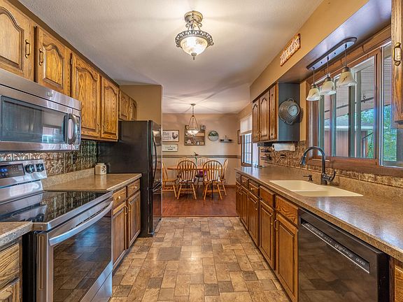 This multi-level home sits on nearly 40 acres of fenced pasture and tree cover. The home has 4 bedrooms, including the beautiful primary suite on the main floor. The sunroom brings in lots of natural light and the kitchen is nicely updated. Walking in from your attached double garage you will find a nice entry with laundry and plenty of closet space. Multiple living spaces and tons of storage throughout, along with a wood burning fireplace in the lower level family room and multiple heat sources. The outside of the home has just been freshly stained. This property also offers a 36x60 shop, which 1/2 is finished and heated and the other 1/2 is covered for storage along with multiple outbuildings and lean-to's, 2 wells on the property and a new septic system installed in 2019. You want privacy, you want horses, you want a hobby farm...take your pick, this property offers it all to you! (Kinetico water system doesn't stay with home.)