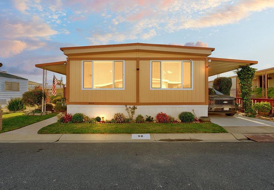Nestled on a manicured lot in the desirable Besaro Mobile Home Community, this lovely home exudes comfort, charm, and convenience. A gated front patio welcomes you into an open-concept living and dining area, where plush carpet, natural light, and charming wainscoting create an inviting atmosphere. The adjoining galley kitchen features a stylish tile backsplash, stainless steel appliances, and an eat-in breakfast bar ideal for casual bites. Beyond the chic kitchen lies an intimate secondary living space that leads back to the home's guest bedroom, hallway bathroom, and a serene primary suite that boasts a luxurious ensuite. Step outside to the gated backyard, a peaceful retreat with a spacious patio and mulched garden beds waiting for your personal touch. When you're ready to venture out of your tranquil abode, the community offers a refreshing pool, spa, and a clubhouse for recreation. A central location provides proximity to HWY 880, lush parks, and endless shopping centers.
