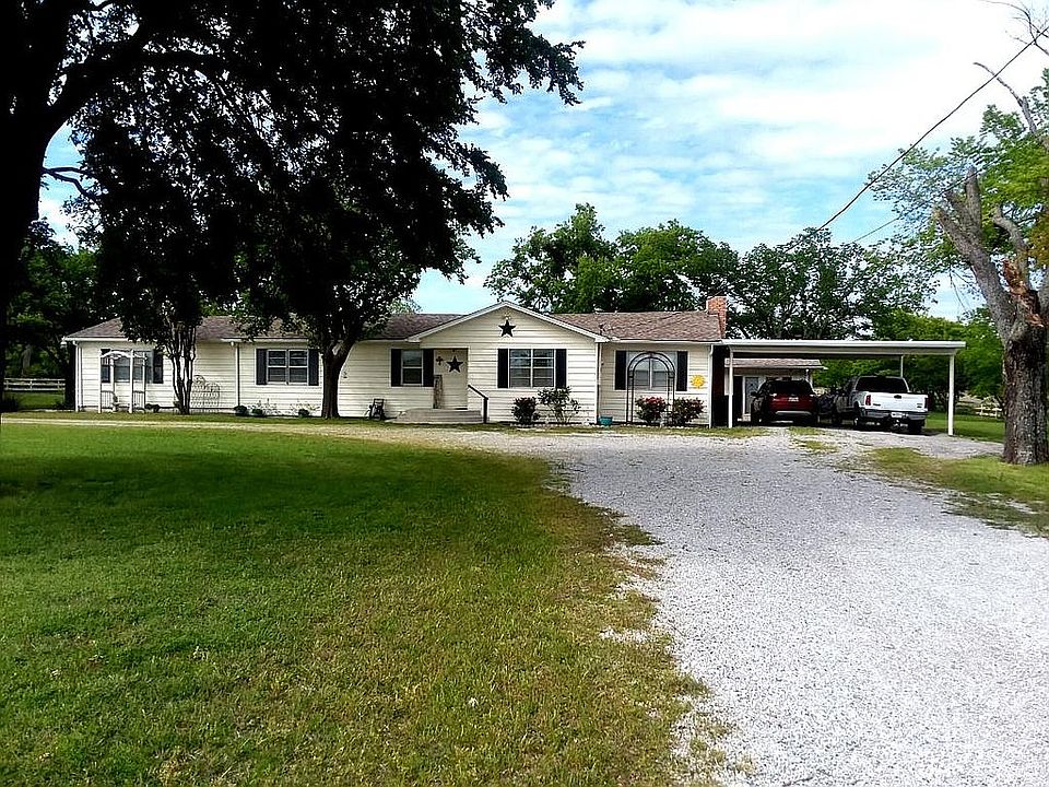 Updated Country house on nearly 3 acres, just outside Sherman city limits. Detached garage is finished out for 2 rooms: a recreation/hobby room and an office. (640 sq ft). The house is 1890 sq ft. There is a ' shop building ( 40x50' x12' sidewalls), plus an open shed that can be used for parking a boat or equipment. There is a small finished out storage building with an AC. Updated kitchen with white cabinets, granite countertops and farm sink. Updated bathrooms. Living areas and kitchen have real hardwood flooring. Bedrooms have carpet. Large master bedroom (20' x 15'). New insert in wood burning fireplace. Barbeque deck. Patio area. Gravel circle drive. Lots of mature trees. Storm cellar. Pipe fencing.. Water well. City water available 1 lot over.