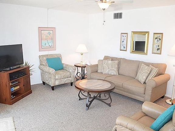 Delightful turnkey furnished beachfront condominium set on the beautiful waters of the Gulf of Mexico. Use it for your own vacations and let rental income pay for it. Investors will also be pleased with an average annual income of over $30,000 (for the last 3 years). Partial gulf view from the large patio area in front of the unit which includes chaises and table and chairs for al fresco dining. The bedroom is exceptionally large for a one bedroom condo and includes two double beds. This beach "home" has an open floor plan with plenty of light in the living area and includes eat-in dining in the kitchen area. Flat screen TV, sleeper sofa (for additional sleeping space) and other comfortable seating make gathering for entertainment quite commodious. There is also a private deck in back with table & chairs and storage room. Has large, heated pool, grilling space, & laundry facilities. Dedicated parking space directly in front of unit--very convenient. Consistent competent management (Chris Bushman has been manager for 10+ years) adds to stability of this investment.