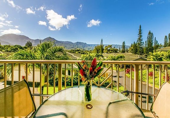 Villas of Kamalii on Kauai - This property is normally used as a vacation rental. This is an opportunity to stay at a fully furnished property on a month to month basis. Non-refundable Linen fee of $500. Plus utilities and taxes. A vision in white, this airy and bright Princeville condominium boasts 3 bedrooms and 3 baths accommodating five guests (K,K,T) in a multi-level configuration, making it an ideal property for couples or families traveling together. Enter and be delighted with the upscale island furnishings and decor and incredible mountains views. Here, you'll enjoy the best of both worlds, with elegant and upscale Princeville outside your door and eclectic and bohemian Hanalei, just two miles down the road. The Kilauea lighthouse is less than 7 miles away, with its stunningly beautiful ocean views and regular sightings of the Nene goose, Hawaii's state bird. Overlooking the tropical foliage outside the front door is a lovely carpeted bedroom, furnished with a twin bed, armoire and nightstand. Tall hedges afford privacy and a triple bay window offers plenty of light and cool breezes. Up one short flight of stairs is the main living area, with vaulted ceilings and hardwood floors. The open concept floor plan allows the group to easily interact and creates a big, open space for everyone to enjoy. Classic island furnishings add an air of grace and overlook the stunning mountain views on the lanai. There's a lovely spot to sip your morning coffee or evening beverage. A gourmet kitchen will be the delight of the family chef. Boasting abundant cabinetry, stainless steel appliances and granite counters, and plenty of natural light through a big window, gastronomic delights will surely emerge from this welcoming space. Those delights will then be enjoyed at the formal dining table for 6, overlooking a bay window with views of swaying palms and other Hawaiian flora. One of the two generous master suites is also located on this level, all the way at the front of the great room for maximum privacy. This carpeted suite offers a king size bed and private lanai with the same verdant mountain views. The en-suite bath has dual vanities and a large, luxurious glass block shower. The lower level boasts the additional master suite with double door entry. This large and private space offers an elegant king size bed, upscale island furnishings and a cozy corner relaxation/meditation area with a chaise lounge. Sliding glass doors lead to a tiled private lanai, complete with privacy hedges and seemingly endless mountain views. A generous master bath offers dual vanities and a separate water closet. A full-size washer/dryer is just outside the entrance to this suite. The third room, the guest room offers a twin size bed and hallway bathroom. This Princeville condominium at Villas of Kamalii will offer your group the Hawaiian vacation you've dreamed of. We look forward to welcoming you on this adventure! No Pets Allowed (RLNE5981071)