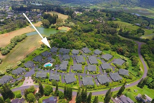This perfectly maintained, fully furnished townhouse is a successful vacation rental and feels like a private jungle hideaway. It has the best location in the complex, being an end unit with views of the Robert Trent Jones Jr designed golf course and lush jungle. It is extremely private with abundant birdsong and a peek of the mountains from the upper lanai. Just steps away, enjoy the heated pool, community BBQ and party pavilion. This floorpan offers 2 master suites, one up and one down with a third smaller bedroom and detached bath. Offering tropical furnishings, beautiful bamboo floors and a fully stocked kitchen, it is move in ready for your discerning buyer. You can walk to shopping, dining, beaches, golf, St Regis Hotel and more on the dedicated pedestrian paths throughout the Princeville Resort. It is a 5 minute drive to the quaint village of Hanalei with its miles of sandy beach, breathtaking views of the waterfalls on Mt Namolokama, many surf spots, Hanalei Pier, restaurants and shops. Another 15 minutes beyond takes you to the amazing snorkeling beaches of Ha'ena and the Na Pali Coast trailhead. If you head the other direction you will find the Kilauea Lighthouse and Wildlife Refuge. Kaua'i north shore...epic location!