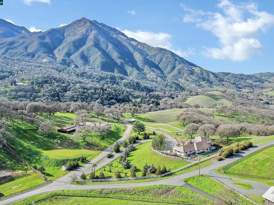 Welcome to 4141 Leon Drive in Clayton. 5 acres, custom house, barn, and a HUGE shop. AMAZING VIEWS! The main house features 3 bedrooms plus a landing space for office or crafts & 3 1/2 baths. Large open eat-in kitchen with walk-in pantry, slider to deck and yard. Gas cooktop, double oven, & recessed lighting. Massive great room with soaring wood beam ceilings, fireplace, bar, and huge windows to take in Mt. Diablo views. Secluded upstairs primary suite with private patio, 2 walk-in closets, and en suite with soaking tub, dual sinks, and large shower. 2 large downstairs bedrooms with walk-in closets. Charming guest bath with claw tub. Spacious laundry room with utility sink, storage, and full bath. 3 car garage and loads of parking. HUGE 3200 sq ft shop with 3 roll-up doors for RV/tractor storage. The shop has an office/bedroom with a full bath and kitchen. The property also features, a barn with 3 stalls, tack room, hay storage, paddocks, a bocce court, decks, artificial turf, an outdoor bar, a dog run, and the most amazing views! Brand new Septic Tank. Must see! Minutes to downtown Clayton and close to nearby Mt Diablo and trails. Hurry on this one!