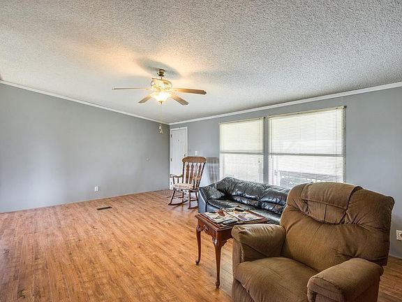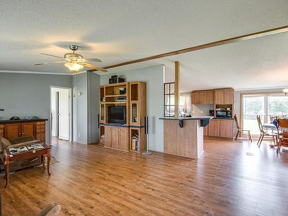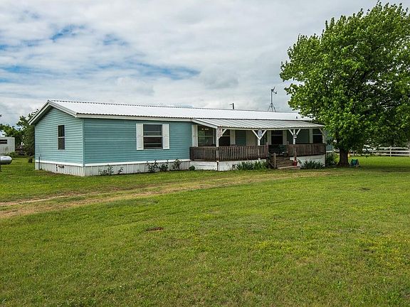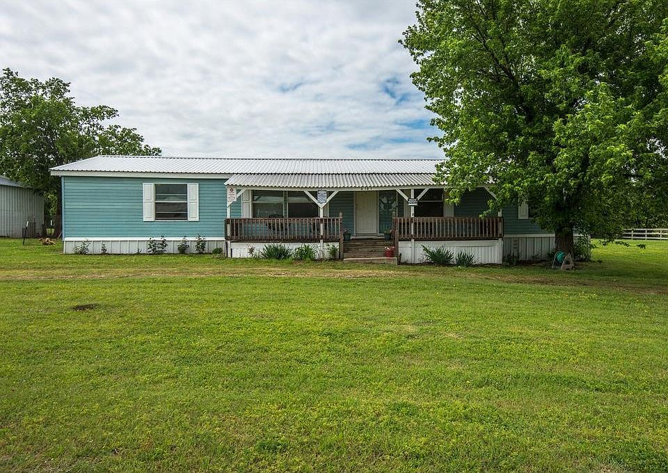 Great, very well kept mobile in Krum ISD on an acre. Fresh paint throughout, and all of the following are two years of age or less; Metal roof, back porch, hot water heater, 4 ton AC, dishwasher, ventahood, and laminate flooring in most of the home. Wood burning stove that the seller says provides most of the heat in the winter. Nice metal shop or detached garage, with power and water. Porches front and back, mature shade trees and fruit trees. Two living areas, and a large master suite, with a walk in closet.
