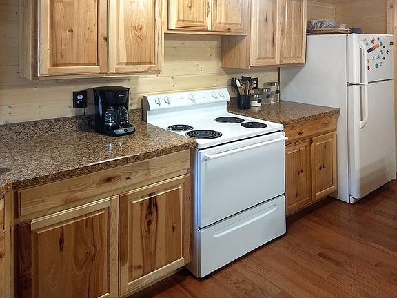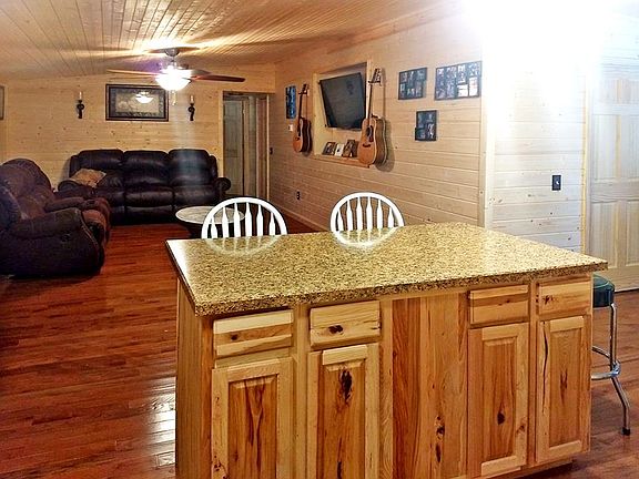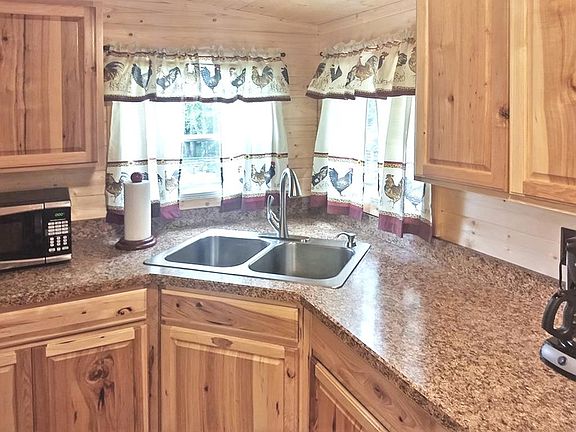 3 Bedroom, 2 bath rooms, Living Room, Den with fireplace, Kitchen with appliances, and Laundry room. The home has been renovated top to bottom; new metal roof, new Hickory Kitchen cabinets, new counter tops, appliances, new tung and groove walls & ceilings, 3/4 hardwood floors throughout, New Heat Pump, all new insulation, PEX and copper plumbing, new pressure tank for well. 14 X 32 Leonard Storage building. The nice drive with mother nature and her ever change venue allows you to relax and renew your mind on the drive to work and back home to enjoy your cabin life!