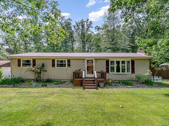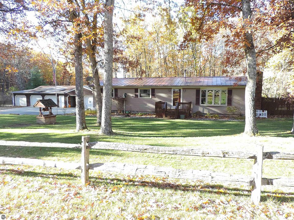 Welcome to this beautifully maintained 2-bedroom, 2 bath ranch nestled on 1.52 peaceful acres with access to Whitebirch Lake. Offering approximately 1,281 square feet of comfortable main floor living, this home features a warm and inviting living room with a fireplace, a convenient half bath located in the primary bedroom, and a full finished basement with a second fireplace: perfect for additional living or entertaining space. Outside, you'll find a paved driveway leading to a spacious 5-stall garage that has concrete flooring, and electrical and is ideal for vehicles, storage, or workshop needs. The property is part of a well-appointed community offering a wide range of amenities, including a clubhouse, swimming pool, tennis and basketball courts, and even a 9-hole golf course. Whether you're looking for a peaceful year-round residence or a relaxing weekend retreat, this property combines comfort, recreation and natural beauty in one inviting package.