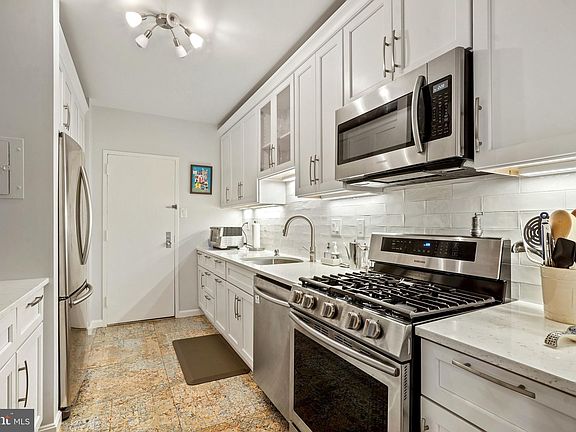 ***Space, value, and convenience meld perfectly in this 1,168 square foot condo with sparkling new kitchen, renovated bathroom and powder room, refinished wood floors, and expansive balcony shaded by trees. ***The 2019 kitchen features sleek white cabinets, quartz tops, tile backsplash, stainless refrigerator with icemaker, gas range, and dishwasher, rustic shelves for dishes and display, and pantry cupboards.*** The renovated bathroom offers marble tile tub surround , large marble topped vanity, and Toto toilet. ***Convenient power room with vanity storage.***The foyer flows into the spacious living room with space for several seating areas and a newly important home office.***Large dining area opens to kitchen for the sociable cook.*** Sliding doors from the living room open to the big balcony with wooden tile decking and space for outdoor dining, container gardening, and relaxing.***Sliding glass doors are repeated in the bedroom with a wall of closets and a step in closet. Gleaming wood floors, fresh paint, and renewed kitchen and baths makes this condo move-in ready. **A highlight of Hyde Park is its private park with areas for grilling, picnics, walking, frolicking on the lawns, and a garden area. The swimming pool has a large sun deck and a separate pool for children. **Ample garage parking for $250 per YEAR. All utilities are included in the condo fee of $768 per month. Two laundry rooms are on each floor. Round the clocks front desk in the lobby and an on site building manager. ** Located in the heart of Ballston, the Hyde Park is next to a grocery store, and blocks to Ballston's shops, metro, restaurants, nightlife, Kettler Ice Rink, gyms, and bike path, Arlington County's new Lubber Run Rec Center and farmer's market.**