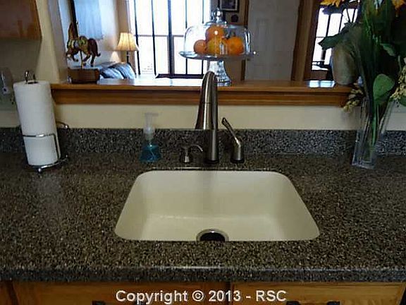 Adorable single level home with terrific views located across the street from a park, close to shopping, schools and bases. 3 bedroom, 2 bath, 2 car garage, all appliances included, fenced and meticulously landscaped. Solid surface counters in kitchen and all bathrooms with one piece sinks; tile floors in entry, kitchen, laundry, and bathrooms; ceiling fans in all bedrooms, living room, and dining area; new kitchen appliances. This property has so much available and is ready to move right in.
