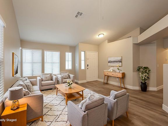Please note, our homes are available on a first-come, first-serve basis and are not reserved until the lease is signed by all applicants and security deposits are collected. This home features Progress Smart Home - Progress Residential's smart home app, which allows you to control the home securely from any of your devices. Want to tour on your own? Click the "Self Tour" button on this home's RentProgress. Some images have been virtually staged to help showcase the potential of spaces in the home. The furnishings shown are for illustrative purposes only and are not included in the home. A beautiful xeriscape surrounds this three-bedroom, two-bathroom renovated North Las Vegas rental home. In the living room, large windows and a button-style light illuminate your favorite leisure activities. Use the living room's sliding doors for convenient access to the large, covered patio in the fenced backyard. Built-in shelves and plant ledges provide space to showcase your treasured decor. Easily prepare meals in the kitchen thanks to the stainless-steel appliances. A modern light fixture brightens the dining room. In the main bedroom, a vaulted ceiling with a fan promotes a good night's sleep. The bedroom's walk-in closet facilitates an organized wardrobe and shoe collection. Begin your day in the walk-in shower of the private bathroom. Schedule an in-person tour today.