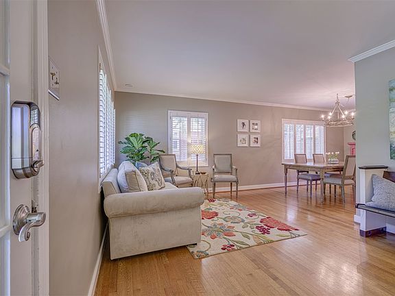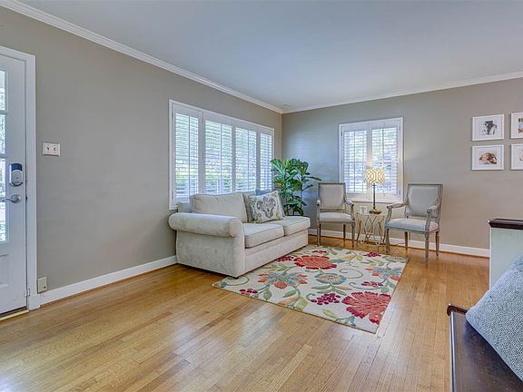 Charming Painted Brick w/ renovated kitchen & bathrooms. Great kitchen with gas stove & breakfast bar very open to den. French doors in den, den overlooks private lush landscaped backyard & patio. Granite & stainless kitchen with black & white tiled floor. Smooth ceilings & hardwoods, plantation shutters & blinds. Immaculate, stylish décor & recessed lighting. ready! 11x 7 mud room inside back door. Built in book cases, tons of storage. Exclude all drapes. OPEN HOUSE FRIDAY JUNE 28 FROM 4-7pm