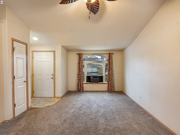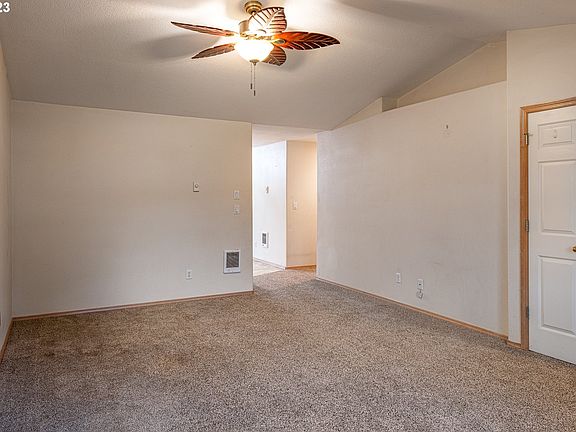 Great 3-bedroom, 2-bath starter home. The kitchen features oak cabinets, stainless steel range, stainless steel refrigerator, dishwasher, microwave, and a sliding door that brings in plenty of light. The primary bedroom has its own bathroom with a walk-in shower. The vaulted living room has new carpet and a ceiling fan. The backyard is fully fenced and has a nice covered deck. Other features include sprinklers in front and back and a garage door opener.