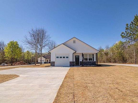 Welcome to 4141A Old Portman Rd, a captivating modern farmhouse exuding charm and character at every turn! Nestled close to Lake Hartwell and the all-new Greenpond Landing, this home offers convenience to boat ramps, grocery stores, restaurants, and more. Step inside to discover a meticulously crafted interior boasting 9' smooth ceilings throughout, complemented by vaulted ceilings in the living room and Tray ceiling in the primary bedroom. The primary suite is a sanctuary featuring a spacious walk-in closet and a wonderful En-Suite bathroom with double vanity, cultured marble counters, and a ceramic tile walk-in shower with glass barn doors.. Indulge your culinary aspirations in the well-appointed kitchen, complete with granite countertops, shaker-style cabinets, and stainless steel appliances. Additional highlights include a large walk-in pantry, a convenient laundry/mudroom off the garage, and elegant luxury vinyl plank flooring throughout the home.. Outside, the 99% maintenance-free exterior is adorned with stone wainscotting, black gutters, and craftsman-style accents. Relax and entertain on the front and rear covered porches and enjoy all this home has to offer. This home is brimming with must-see features, from the designer faucets to the recessed lighting, making it a truly exceptional find. Don't miss your chance to experience the epitome of modern farmhouse living"schedule your showing today!