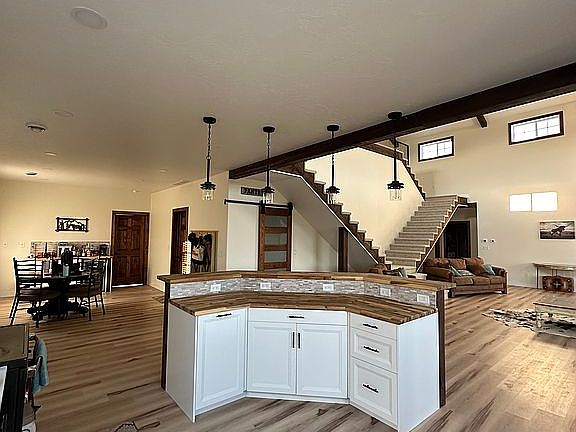 Garrison Lake Cabin Located just minutes from garrison off a paved road and close to the state park, this beautiful property is the ultimate summer and winter home. 4 bedroom 2 1&2 bath 2 acres 9 camper plugs with water on the property 1600 sq ft shop 3600sq ft in the house 2 stall garage (Air Conditioned) Floor heat in garage and house Dual energy furnace Gas fireplace indoor/outdoor Sand/ fire pit down below 30x30 covered deck with fireplace and TV playhouse for kids 3 miles south of garrison right at fort Stevenson Garrison School route Contact for price