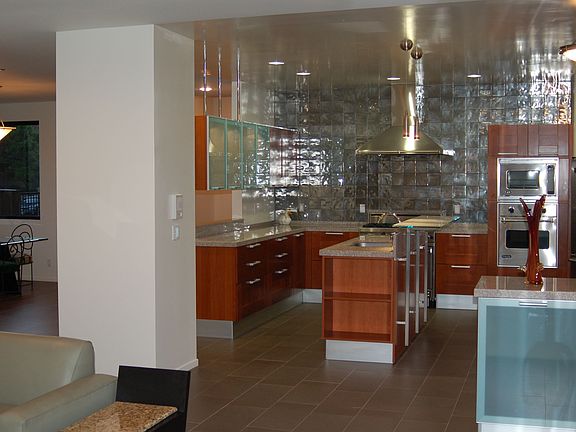 Spectacular custom built home with private pool and city light views. This hip sexy contemporary has been completely re-designed and re-built in 2007 and offers an open light filled floor plan, high ceilings in most rooms and walls of glass looking out to beautiful views. Viking kitchen with center island and breakfast bar opens to an expansive family room and entertainers yard. Living room with fireplace. Huge master bedroom retreat with views, fireplace and luxurius spa inspired bath including dual vanities, soaking tub and oversized glass shower.
