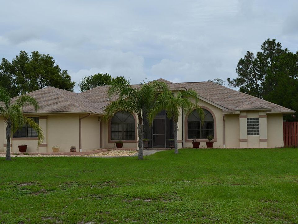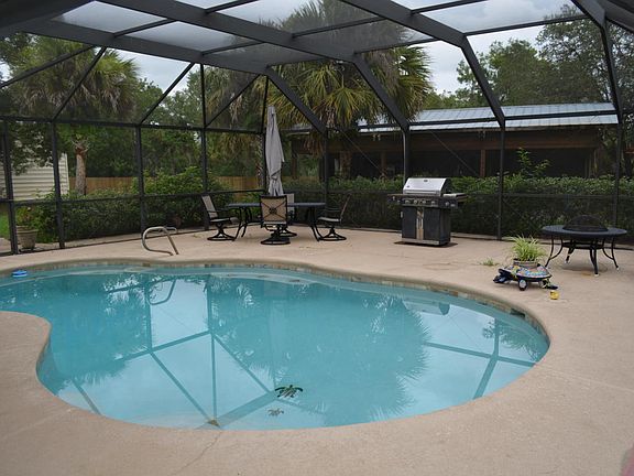 Country Setting on a little over an acre with pool,Pole Barn and Large Approximate 40 X 29 metal workshop. This open floor plan offers a Large custom kitchen with natural wood cabinets, built in Wine Cooler, Great room, Formal Dining area & Breakfast room with custom tile thru out the living areas.Split Bedrooms have wood tile flooring. French doors lead you to the Florida room and screened Pool & Patio. "Imagine entertaining friends and family poolside on a warm summer day." Workshop has 220V electric and 2 overhead roll up doors. Plenty of room for the Big Boy Toys. Separate pole barn with 3 stalls for the horses or that could be closed in and converted to guest house. Completely fenced with electric gate. SEE FEATURE sheet for more information.