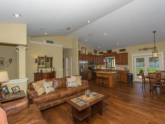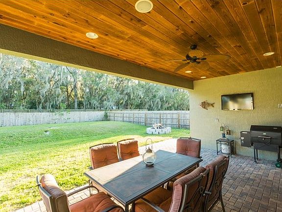 Incredible Custom Built, 3 Bed / 2 Bath home with a huge backyard, located in a very private community in South Lakeland. This home features an impressive open floorplan with high ceilings and a split bedroom lay out! Some of the best upgrades include real hardwood floors, solid wood cabinets and granite counter tops throughout, custom crown molding throughout the home, upgraded carpet in the bedrooms, custom tile showers and premium fixtures. The large kitchen features a center island and tons of counter space, as well as stainless steel appliances a view of the backyard. The layout of the kitchen and living room is perfect for entertaining or relaxing at home with family or friends. The master suite includes a tray ceiling with recessed lighting, a custom glamour bath and large walk in closet, as well as a french door leading out to the back lanai. The 2nd and 3rd bedrooms are quite large and have lots of closet space. The front of the home has amazing curb appeal that you wont find anywhere else at this price point and there is an attached oversized garage, long enough to store a nice sized boat on the trailer!!! The back of the home features a huge covered lanai with a custom finished tongue and groove wood plank ceiling and paver floor and patio. The backyard is completely fenced with privacy fencing and very private. This one of a kind property will not last long on the market! Schedule your showing today before it is too late!!!