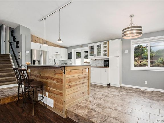 Welcome home to this updated home in Centennial's Ridgeview Hills neighborhood. This light and bright home features vaulted ceilings, new interior paint and a remodeled kitchen that acts as the focal point of the main floor. Enjoy preparing a meal in the well-appointed kitchen boasting butcher block and quartz counters, a large center island, white cabinetry, tile backsplash and SS appliances. Retreat to your upper level primary suite, complete with a spacious walk-in closet and ensuite bath and a new Trex deck with sunken Bullfrog hot tub. A secondary bedroom and full bath are located on the upper level and a 3rd bedroom with ensuite bath are just off family room. The finished basement with bonus flex room is great for a move theater, kids playroom, home office or gym. Enjoy entertaining on the patio with gas firepit and gas girll hookup. This backyard is a true oasis with mature trees, all new sod and a serene water feature backing to a park. Easy access to Little Dry Creek Park through the private gate behind the property. Minutes from neighborhood parks, Littleton schools, shopping, dining and more. Book your showing today!