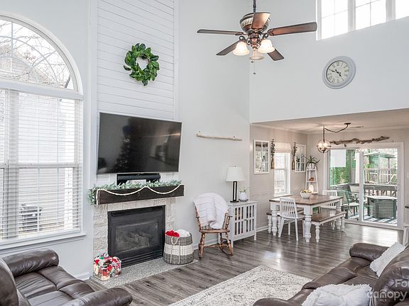 This three bedroom, 2.5 bath with large Bonus/FROG is located in highly desirable Oak Park. The main floor offers a spacious primary bedroom, walk in closet with custom shelving and an ensuite bath with garden tub/shower. The living room has a gas fireplace and is open to the kitchen that boasts stainless steel appliances and granite countertops along with the dining area and eat in bar. There is also a half bath for guests and a laundry room. Upstairs you'll find two additional bedrooms, a bathroom, and a large bonus room that can serve as a 4th bedroom (has closet) or flex space/office. The two car attached garage has plenty of storage. Rear Deck & Fenced backyard with a fun treehouse and wired storage building. Situated on a quiet cul-de-sac street and is conveniently located close to Hwy 73 and I-85, shopping, restaurants, entertainment and more! Neighborhood ammenities include swimming pool, basketball and tennis courts, club house and playground. Great Cabarrus County Schools!