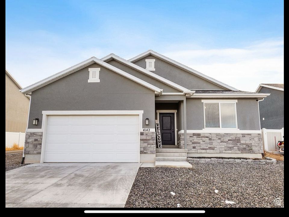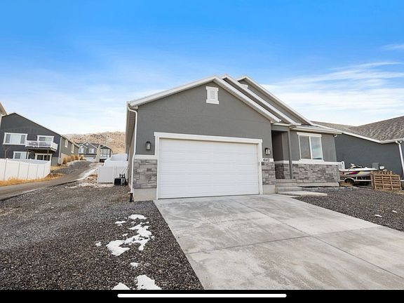 Step into modern comfort with this spacious 3-bedroom, 2-bath rambler in a quiet Eagle Mountain neighborhood. Built in 2020, this beautifully designed home features an open-concept layout with vaulted ceilings, granite countertops, and stainless steel appliances perfect for both everyday living and entertaining.