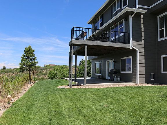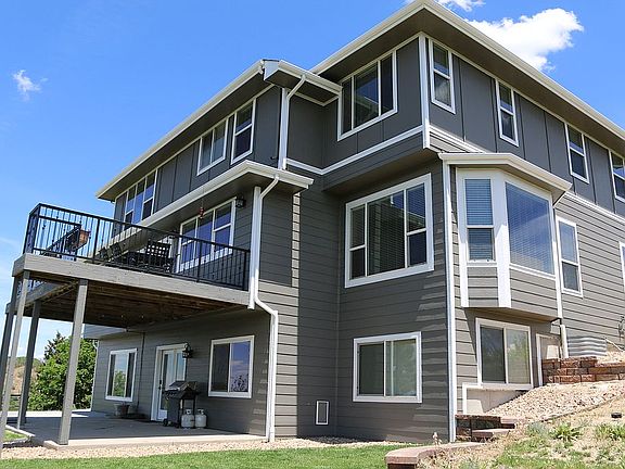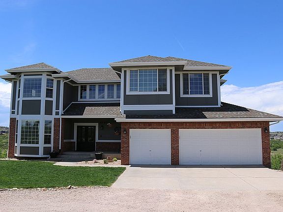 Large 6 bed/5.5 bath custom home on 5.2 acres and less than 5 miles from downtown Castle Rock. Finished walk-out basement. Home has a 3-car garage plus an out-building that has an additional 1-car space and work shop/storage area. As you walk in the main level, you're greeted by Brazilian cherry hardwood floors. On this level is a formal living room, formal dining room, family room with gas fireplace, kitchen, laundry and powder bath. Upstairs is the master bedroom, 5-piece master bath, 3 spare bedrooms, and 2 full bathrooms including an ensuite. In the finished basement is a large rec room w/ wet bar and mini-fridge, 2 additional bedrooms each with its own 3/4 bathroom. Other features include stainless kitchen appliances, ceiling fans, walk-in closets, 2" blinds, deck, sprinkler system, eat-in kitchen, large entry foyer, tile floors and more! Exterior freshly painted may 2020, new furnace in 2017, new water heater in 2017, new refrigerator in 2018.
