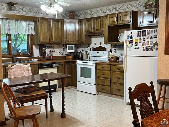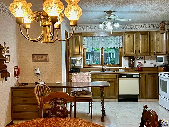 Open Thurs 4:30-6:00pm - Welcome home to this 3-BR, 2.5 BA Shawnee Hgts, Southboro Sub ranch home. Original owners, this timeless charm has kitchen, w/walk-in pantry, that opens to dining and cozy Great Rm w/wood fireplace. Main Floor Laundry with lots of closets. Primary en suite has walk-in shower and 2 closets. Two other BR’s offer versatility and comfort. Enjoy morning coffees or quiet evening dinners in the 37 x 8 ft East side sunroom, with skylights and new windows that provide tranquil views of surrounding greenery. Has a perfect spot for garden too! Full unfinished basement with separate work shop and ½ bath, offers room for expansion. OS 2-car garage is 23 ft wide and 23 feet deep, with portion 33’ deep. Lots of room for bikes/toys and outdoor equipment.. Lennox HVC new 2017. This functional, well-maintained ranch offers a haven of comfort and style for everyday living, situated on nice corner lot. Close to Lake Shawnee