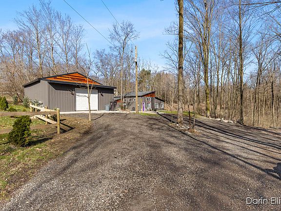 2022 Built 3 Bed, 2 Full Bath sought after and rare stick-frame built Barndominium style home on 2 Wooded Acres between Saranac and Ionia. Wide open floor plan with vaulted ceilings. Kitchen has tile flooring, all new appliances, large snack bar, and beautiful poured epoxy counters. Rear mud room provides for the perfect laundry and pantry area with slider access to huge patio. Main floor Primary with private bath. Baths have tile floors, showers, and modern fixtures. Full house length rear deck overlooks a secluded and wooded backdrop. 24x36 Pole barn, 12x24 2 story recreational shed w/ tons of possibilities included additional living space. Fenced in animal area with farm coop complete the estate. Additional acreage available depending on price/ terms approved by seller. Hurry to show!