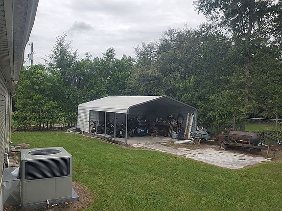 Nice Fenced yard, work shop with carport on cement slab, deep well and septic system, 16x10 enclosed from porch, back porch, 4 1/2 ton central unit installed April 2022 with warranty, metal storage building, security camera's