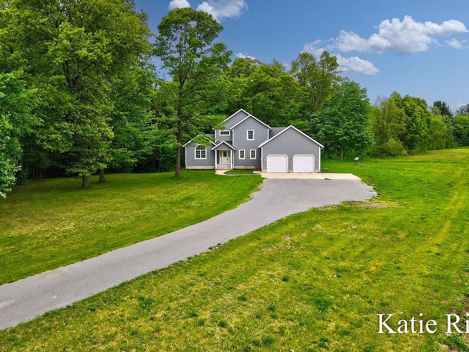 This one checks ALL the boxes!! A large, well built home on acreage with a stream, an excellent floor plan, main floor primary bedroom, large garage and entryway and custom cabinetry throughout. A slice of heaven to call home and make memories gathering around the kitchen island. Let's walk around the property and soak up the long summer days or snuggle up by the fireplace in the winter with family. Not far from town and close to Lake Michigan! Give us a call so we can chat about the possibilities! This house can be yours! We would love to schedule a private tour for you!