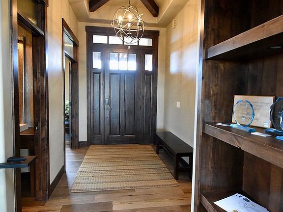Stylish Custom Ranch by Buer Homes on .32 Acres backing to the Big Thompson River w/ spectacular mountain views includes 4 Bdrms. 4 baths, main floor study, gourmet kitchen w/ Quartz ctrs. & butler pantry, formal dining room, vaulted ceilings, Mst. suite w/ 5-piece bath, copper tub & elegant walk-in shower, partially finished walkout basement w/ large Rec. room, bedroom & full bath, custom finishes throughout. Attached 4+ car finished garage. Prof landscaping w/ covered deck. A Colorado Beauty!