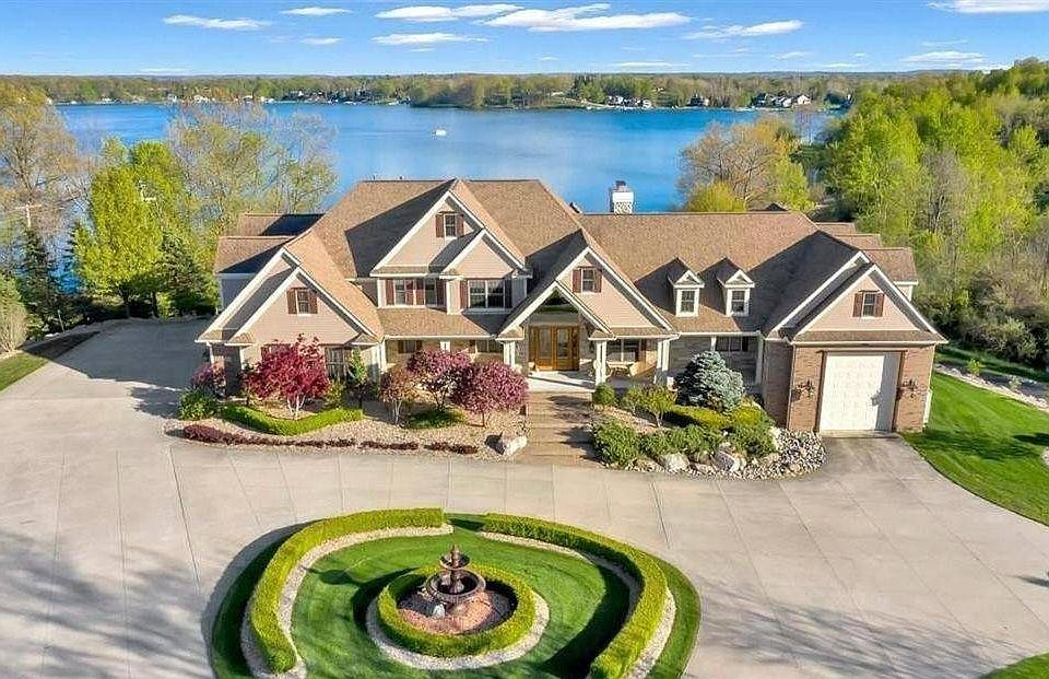This property is being offered via online only auction with a minimum bid of only $1,600,000. It will sell at or above that price, plus the buyer's premium. This is not a foreclosure and inspections are welcome and encouraged. Custom-built 4 bedroom, 5 bathroom celebrity home with over 9,190 sq ft of finished living space, located in the gated Lake Nepessing Bluffs community on more than 7 acres with private frontage on all-sports Lake Nepessing. Features include a two-story great room with fireplace, gourmet kitchen with high-end appliances, and a main-floor primary suite with fireplace, en suite bath, and lake views. Finished walkout lower level includes a second kitchen, bar, theater, billiards room, sauna, steam shower, and additional laundry area. Whole-home audio system, energy-efficient HVAC, and three fireplaces. Outdoor amenities include over 1,000 sq ft of paver patios and decks, a paved path to a lakeside entertainment lounge with overhead doors, HVAC, water service, and restrooms, plus a private dock. Oversized four-car garage and heated RV/motorhome garage.