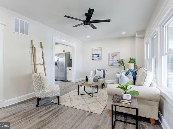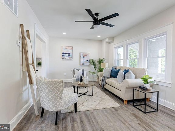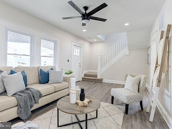 Beautifully renovated bungalow in the Wilson Park neighborhood of Baltimore! Arrive into the main level by way of the front porch and experience an open floor plan that is highlighted by modern flooring, a picture window, recessed lighting, and access to the rear yard ideal for entertaining. Let the gorgeous kitchen inspire gourmet meals boasting a subway tile backsplash, 42" soft close shaker style cabinetry, stainless steel appliances, center island with breakfast bar, and quartz counters. Relax and unwind in the primary bedroom suite featuring plush carpet, a double door closet, and a private loft area. The fully finished lower level provides a spacious family room with a full bath and ample storage. Major commuter routes include I-695, I-95, I-895, & I-83! Updates: Completely Renovated.