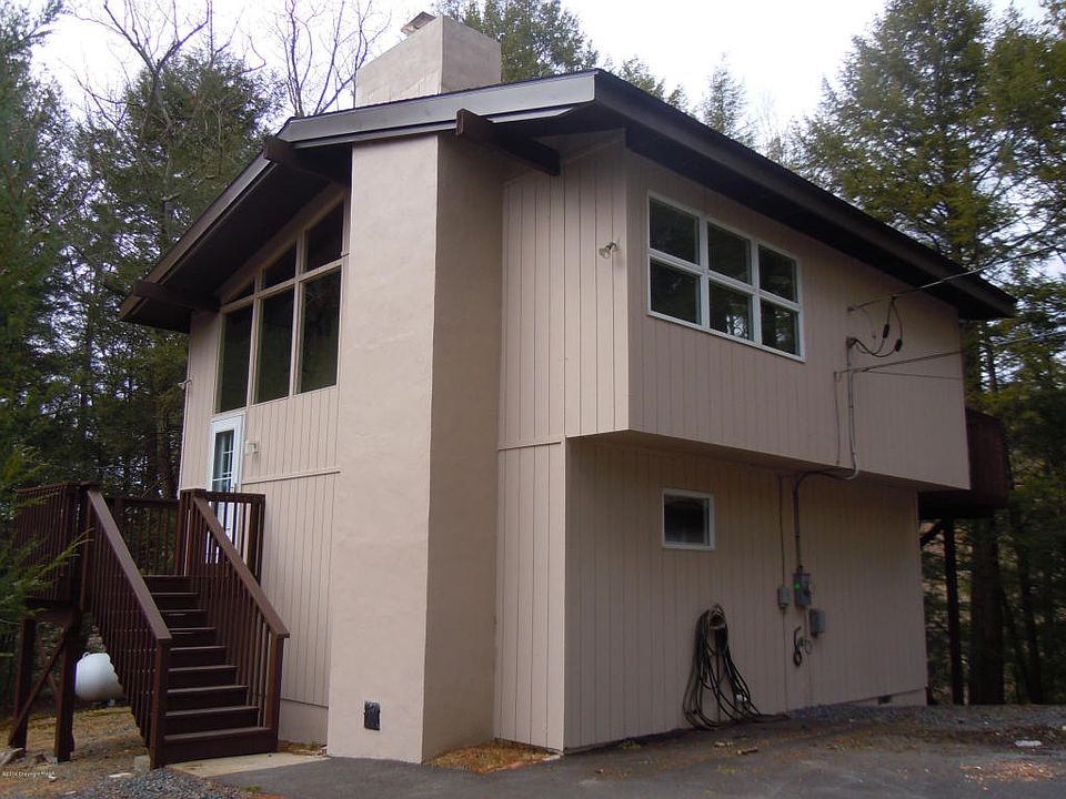 Anthony Lorie Realty Executives 570-476-2424 office 570-350-8500 Anthony direct www.AnthonyLorie.com ** Wow Factor!* Tastefully COMPLETELY RENOVATED Home * LIKE NEW * Open the Windows or Sit on the Deck of this Treetop Living Home and hear the Soothing Sound of the Fishing Stream Below * Second Floor Living with Wood Vaulted Ceilings in Living Dining & Kitchen for an Open & Airy Feeling * Eat-In Kitchen has Oak Cabinets and a HUGE Breakfast Bar * Brick Fireplace * Detache d Garage * Community Amenities Include Indoor & Outdoor Pools Beautiful Clubhouse and More * Low Taxes **