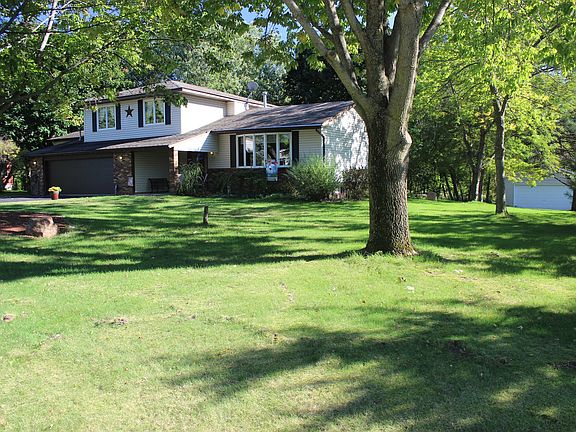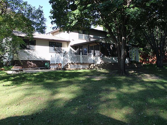 In-town acreage with city water and sewer located on a beautiful wooded lot. Come enjoy the scenery while relaxing on the deck or 3 season's porch accented in knotty pine. Inside you can relax by the gas log fireplace while reading you favorite book, which you can shelve on the many custom built oak book cases or built-ins throughout many areas of the home. This multi level home offers a fabulous kitchen with an eat- in area and a formal dining area. Take advantage of the many comforts this home offers including a main floor laundry, spa, endless pool, and workout room with shower and heated tile floors. There will be plenty of storage for your toys here with two separate over-sized 2 stall garages.