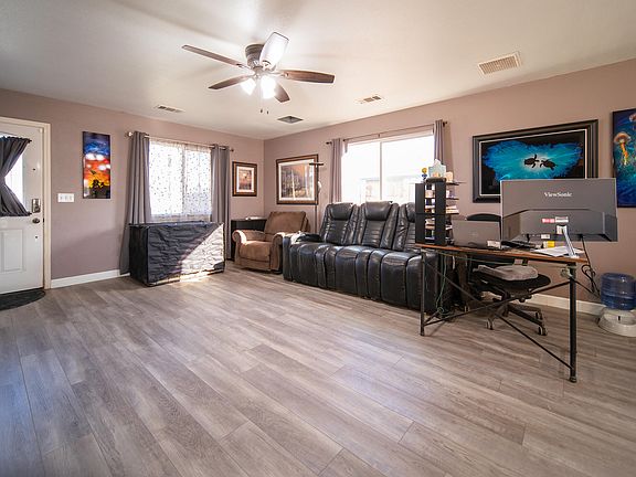 Wow! Solar powered modern home, so close to city amenities, schools, and other campuses. LVP flooring throughout. Updated bathrooms. Unique exterior access to Bedroom 1 and locking Hall Bathroom could be an in-law, or STR possibility. Green accessories include wall mounted evaporative cooler in garage that can be routed through the entire house for cost effective cooling on all but the hottest days. Must see!