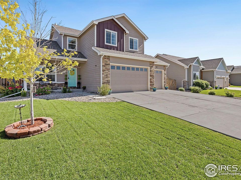 Gorgeous Pottery Barn style home with mountain views! Step into something truly stunning - bright, sun-splashed spaces, high ceilings, premium light fixtures, and custom touches throughout. Sip your morning coffee on the covered front porch before setting off on your Summer adventures. Bright, open living room with custom built-ins, floating shelves, ceiling fan, and a cozy fireplace - the perfect spot to curl up with a good book. Wonderful kitchen with high-end Kitchen Aid and Samsung stainless steel appliances (all stay!), Shaker cabinets, stone counters, undermount sink, gas range, large pantry, tile backsplash, and island bar. Main level study with French doors (add a closet for a 4th bedroom). Large upper level laundry room with shelving and cabinet space. Host an evening under the stars in the large backyard complete with covered composite deck, stone seating area, and dog run. There's plenty of space for yard games! Relax in your Serene Primary Retreat with vaulted ceilings, fan, art niche, walk-in closet, and spa-like private bath. Your 5-piece luxury bathroom features dual vanities, oversized jetted soaking tub, and shower. High-efficiency furnace, Nest thermostat, rough-in basement bath, and insulated 3-car garage for all of your toys. Close to the community park, golf, watersports, and shopping, dining, and entertainment of Old Town Fort Collins. View today and make your next move your best move!
