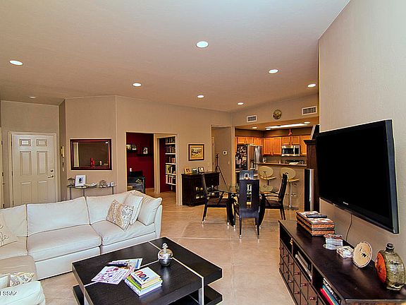 Astounding home in the desirable Barrio Centro Community. Tastefully upgraded throughout featuring: upgraded kitchen with breakfast bar, stainless appliances and a wine refrigerator, great room concept with 10' ceilings, with lots of natural light, recessed can lighting, ceiling fans, stained concrete floors, custom decor interior paint, remodeled bathrooms with tiled showers and granite counters in the master bathroom, new HVAC unit, and a fresh exterior paint. Enjoy the adorable backyard with a gorgeous redwood deck.